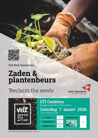 - Zaterdag 7 maart’26.: “Zaden- en plantenbeurs ‘Reclaim the Seeds’ Oedelem” organisatie van Velt West-Vlaanderen van 10u tot 17u